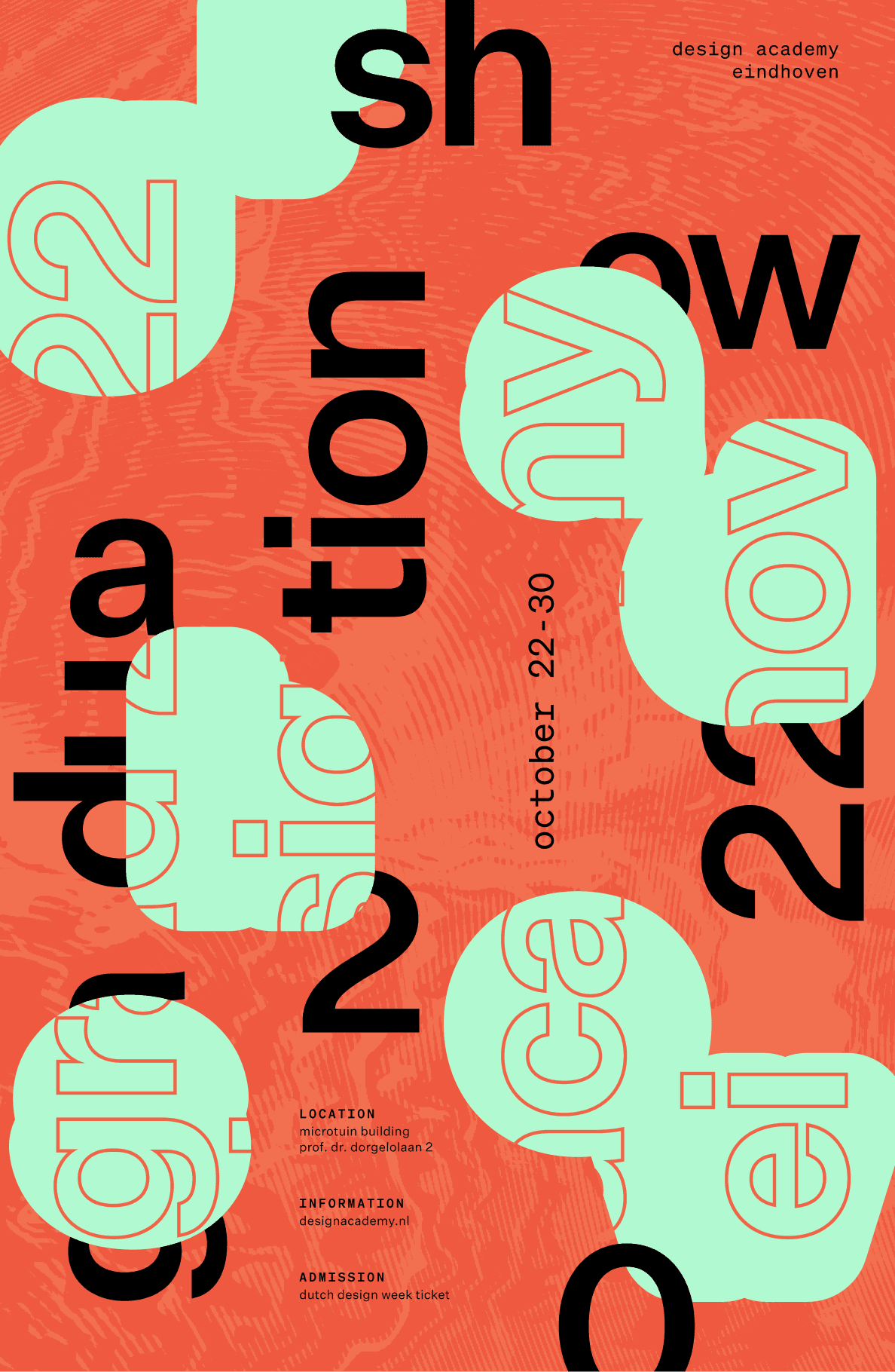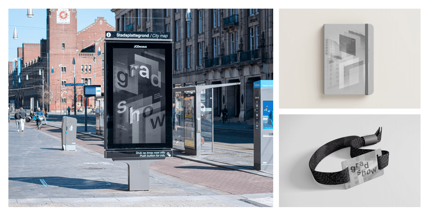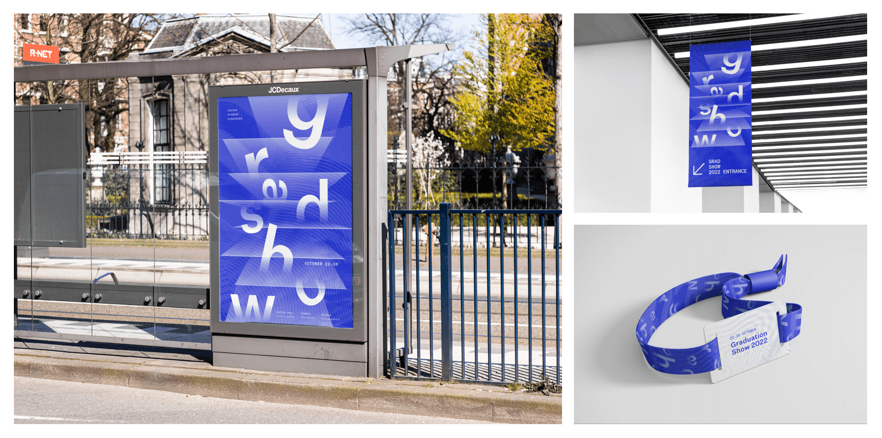 Graduation Show is an annual curated exhibition held during Dutch Design Week, consisting of Bachelor and Master multimedia student projects from the Design Academy Eindhoven. We designed 3 separate identities to promote this event, utilizing and adapting design qualities of the Amsterdam-based design studio, Experimental Jetset.